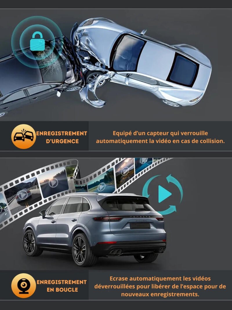 ⚠️ G-Sensor & Détection de Collision – Protection immédiate des enregistrements en cas d’accident